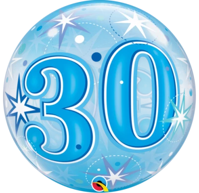22″ Qualatex 30th Birthday Star Burst Blue Bubbles Balloon Balloons