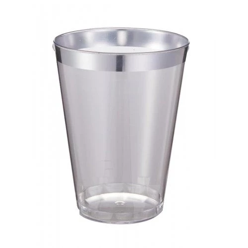 This silver trim drinkware is a stylish addition to our Occasions range! This range is made from highly recyclable PS plastic, is BPA free and is ok to hand wash and re-use!