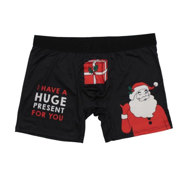 Get into the Christmas spirit and have a laugh in the process with these festive boxer shorts! In a soft, comfy and supportive fit, with a cheeky Santa graphic and comedic “I have a huge present for you” text at the front, this is a ‘Frankly Funny’ gift for your loved one that they’re sure to love slipping into.