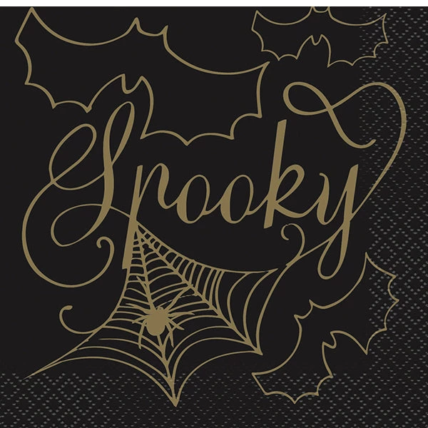 16pk Black & Gold Spider Web Spooky Beverage Napkins 2ply