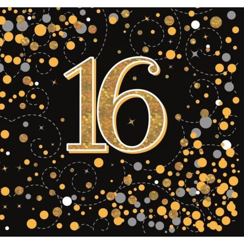 Sparkling Black Gold 16th Birthday Luncheon Napkins
