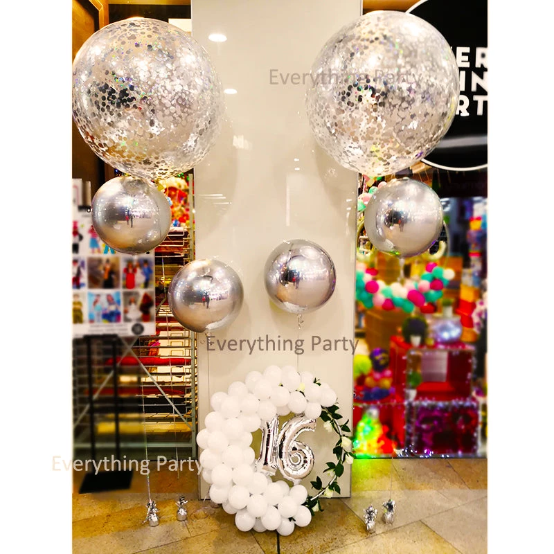 - 3ft (80-90cm) Jumbo Confetti Helium Balloon with Foil Silver Confetti  * 2
