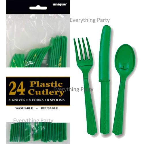 Everything Party 24pk Plastic Cutlery – Emerald Green All Birthday