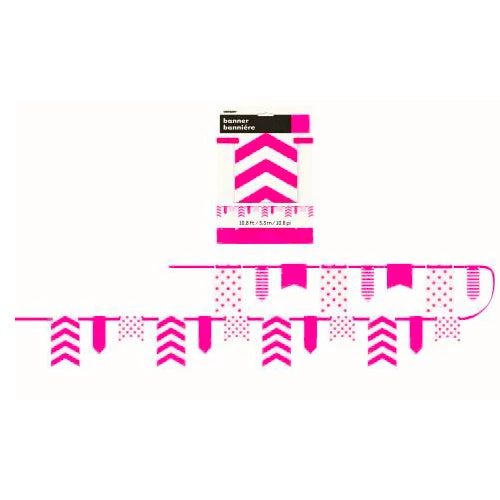 Everything Party 3.3m Dots, Stripes & Chevron Paper Pennant Banner – Hot Pink