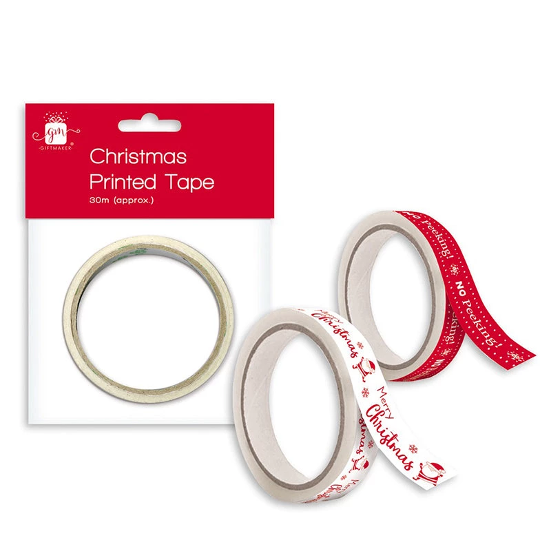 Red tape printed with ‘NO Peeking!’ and snow flakes