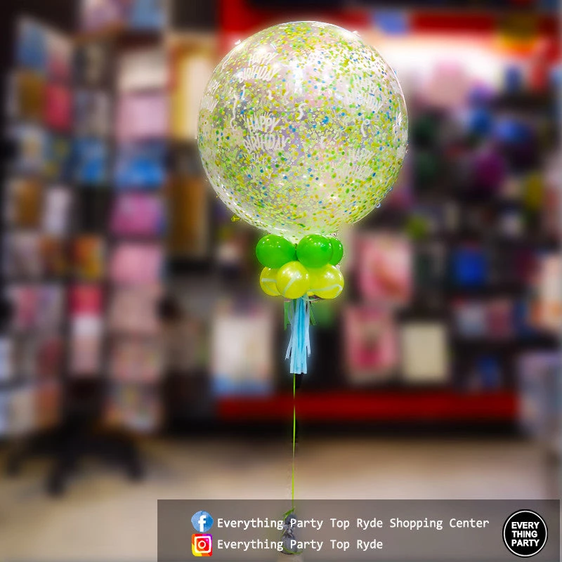 - 3ft Confetti Helium Balloon with Green, Yellow and White confetti