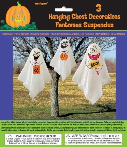 Pack contains 3 ghosts, 3 balloons, twist ties (string to hang ghosts not included).