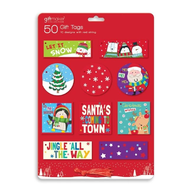 50 Cute Christmas Xmas Gift Tags Round Square Rectangle With Thread Kids Tags
