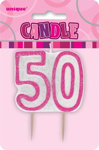 Everything Party 50th Birthday Glitter Candle (Pink, Blue Available) All Birthday