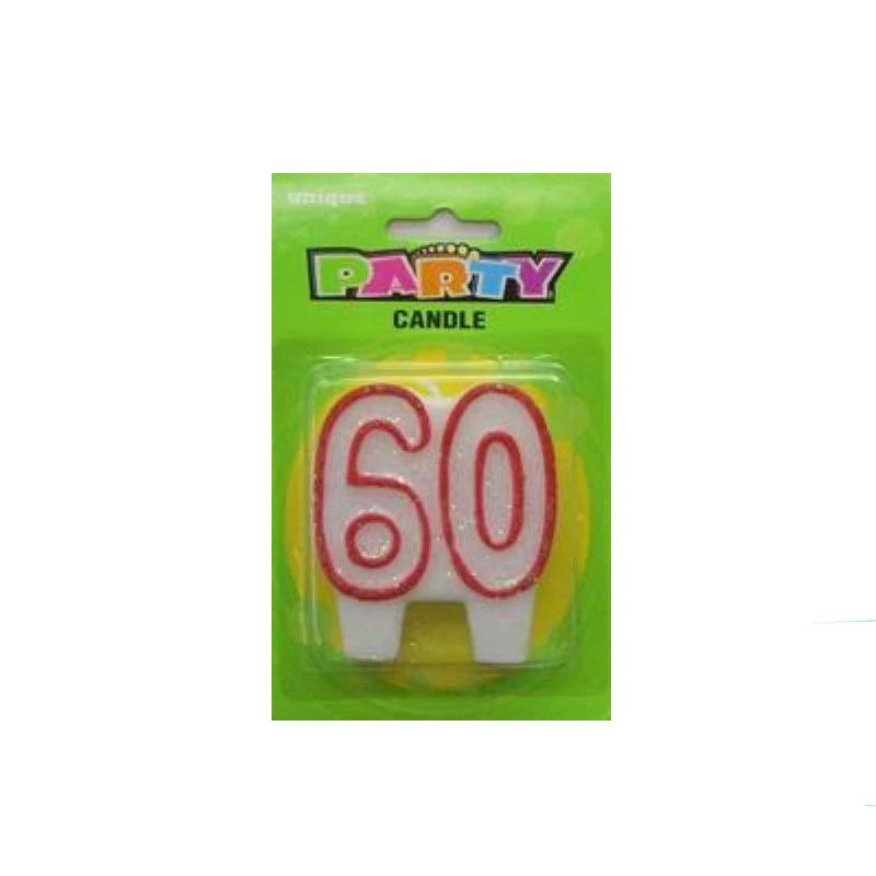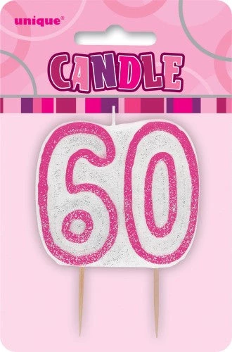Everything Party 60th Birthday Glitter Candle (Red, Pink, Blue Available)