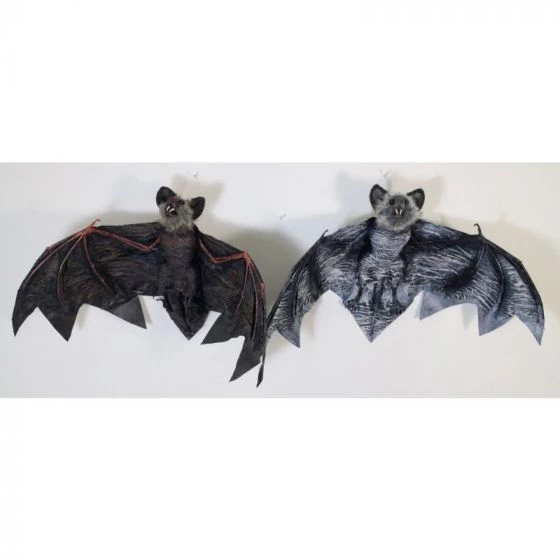 Bat is made with a foam core and plastic pieces and soft polyester fabric wings and synthetic fur detail. Wings are fixed in postition.