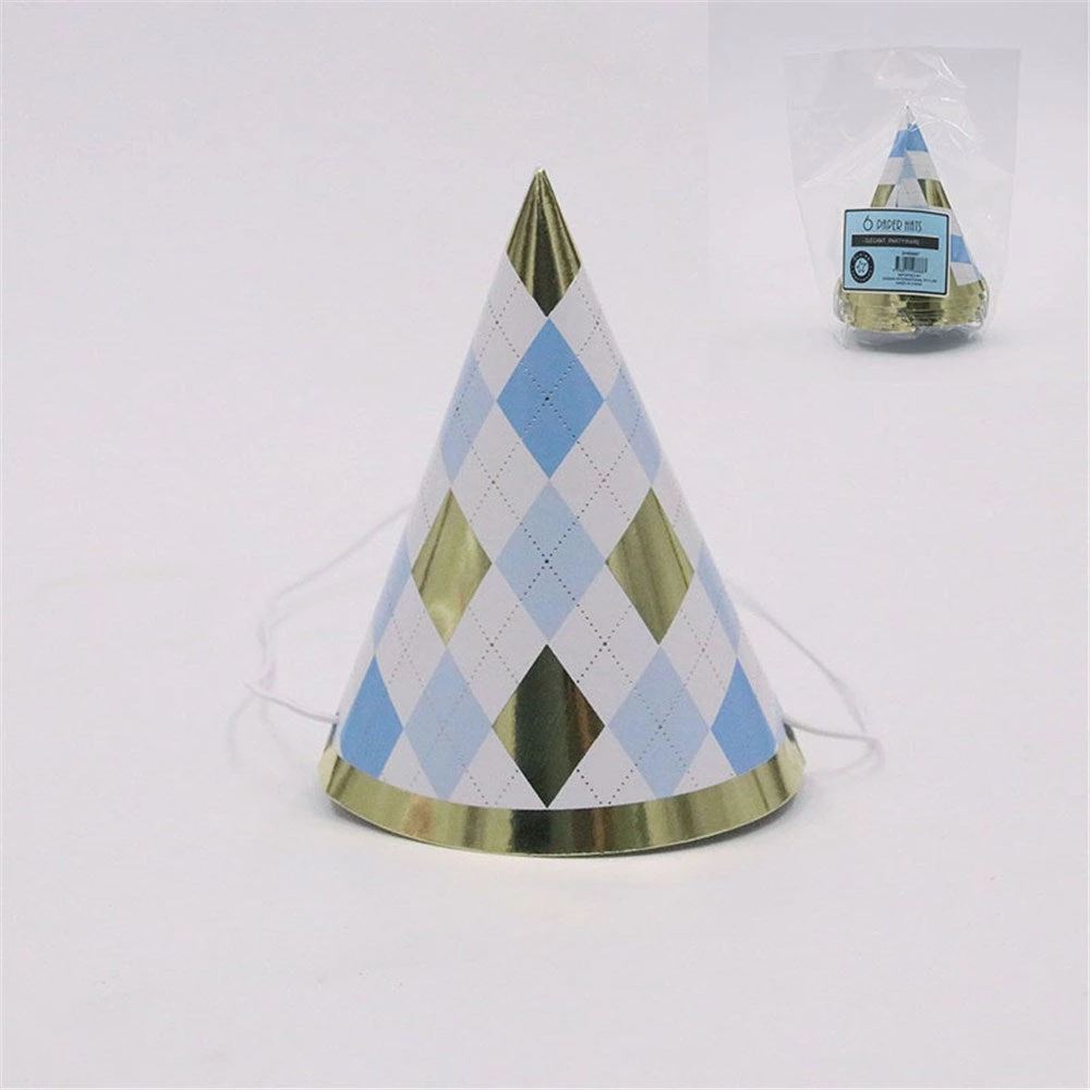 Everything Party 6pk Mini Blue Plaid Birthday Party Hats