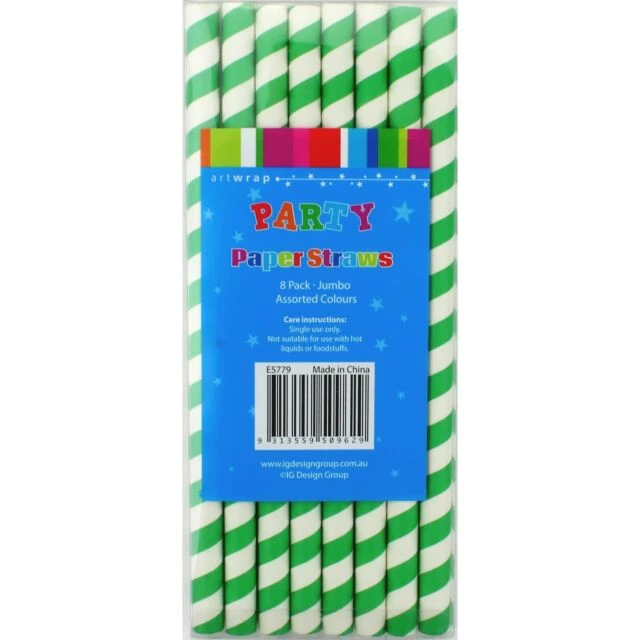 Everything Party 8pk Jumbo Paper Straws – Green Stripe All Birthday