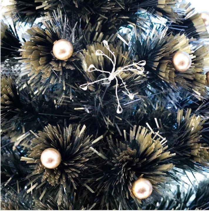 90cm Green Christmas Tree with Ultra Bright Warm White Fibre Optic LED Lights and Gold Balls