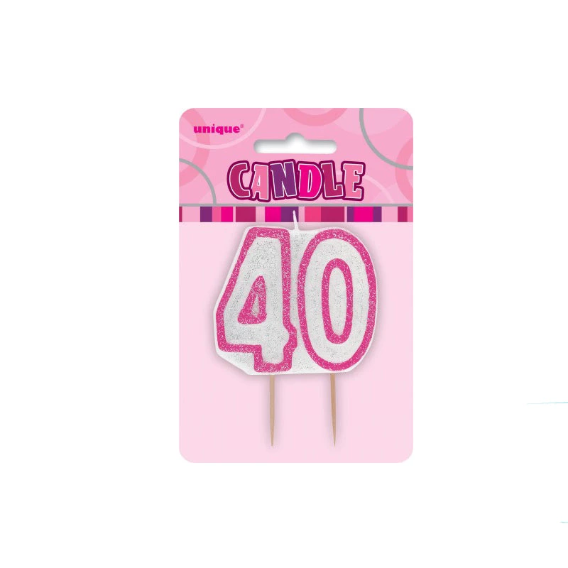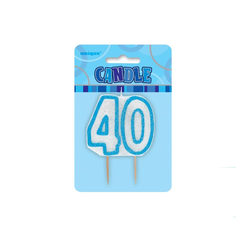 Everything Party All Birthday 40th Birthday Glitter Candle (Red, Pink, Blue)