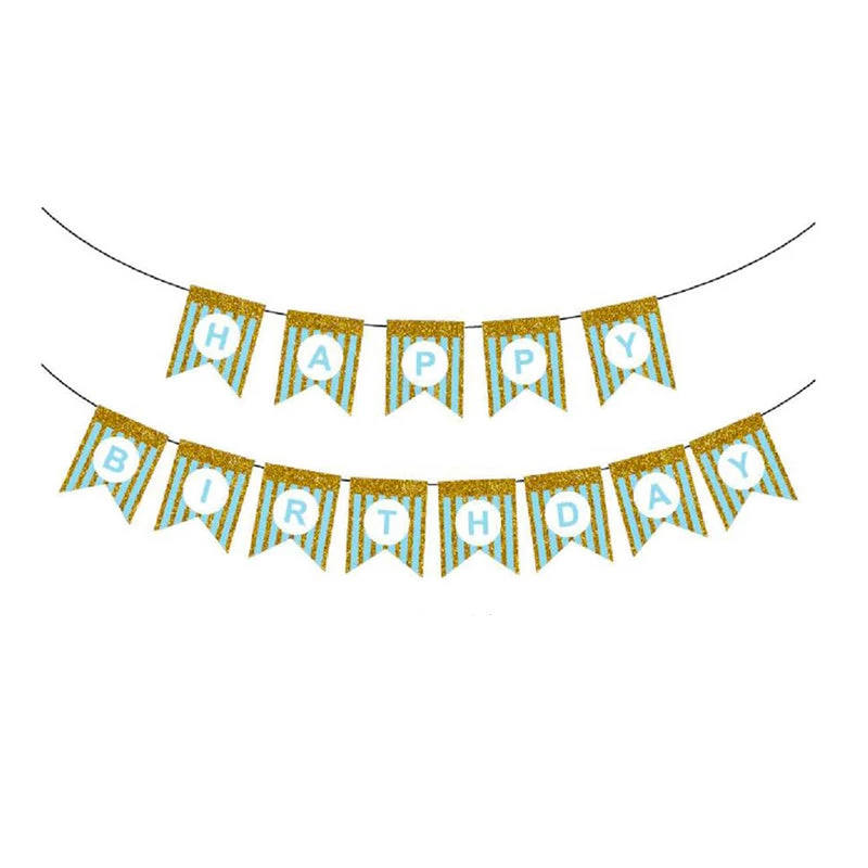 Everything Party All Birthday Happy Birthday Banner With Glitter Stripe – Blue & Gold