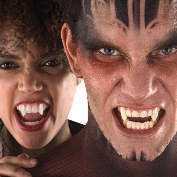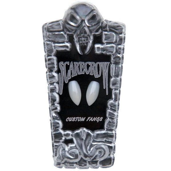 The Original Scarecrow Vampire Fangs – “Classic Deluxe Custom Fangs” are designed for people with average to larger teeth. They may fit either canines and/or incisors or bottom teeth. Fast, easy, comfortable, and totally realistic. Natural color fang caps are shiny, rigid and beautifully contoured to look great in any mouth. On-the-spot customizing is fast, easy, and only needs to be done once. Everything you need is included, no additional utensils and no boiling water necessary. Once customized, fangs fit with a unique mold of your tooth inside that allows you to snap them on or off, quickly and easily (no thermoplastic partial plate around adjacent teeth). Scarecrow Vampire Fangs give you the best hi-definition quality realism that professional TV & film make-up artists, actors and stage performers depend on. As seen on CSI: Las Vegas, America’s Next Top Model, Dancing with the Stars, and many more.