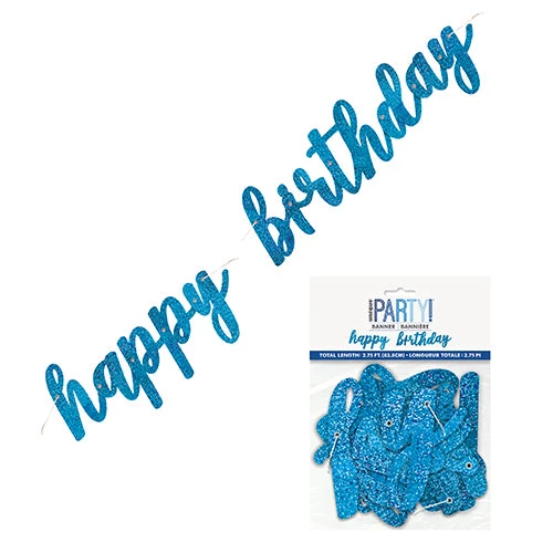 Everything Party Happy Birthday Prismatic Blue Foil Script Jointed Banner 83.8cm (2.75′) All Birthday