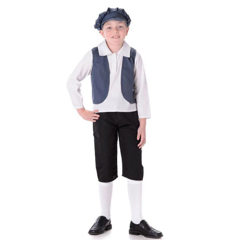 A children’s Victorian era costume for boys, based on Oliver Twist from the Charles Dickens’ novel.