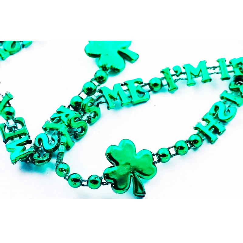 st patrick’s day necklace with ‘Kiss me I am Irish’ and shamrock