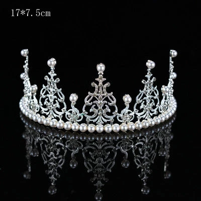 this premium metal tiara decorated with white pearls and diamonds, perfect decoration for cake and photo shoot.Â