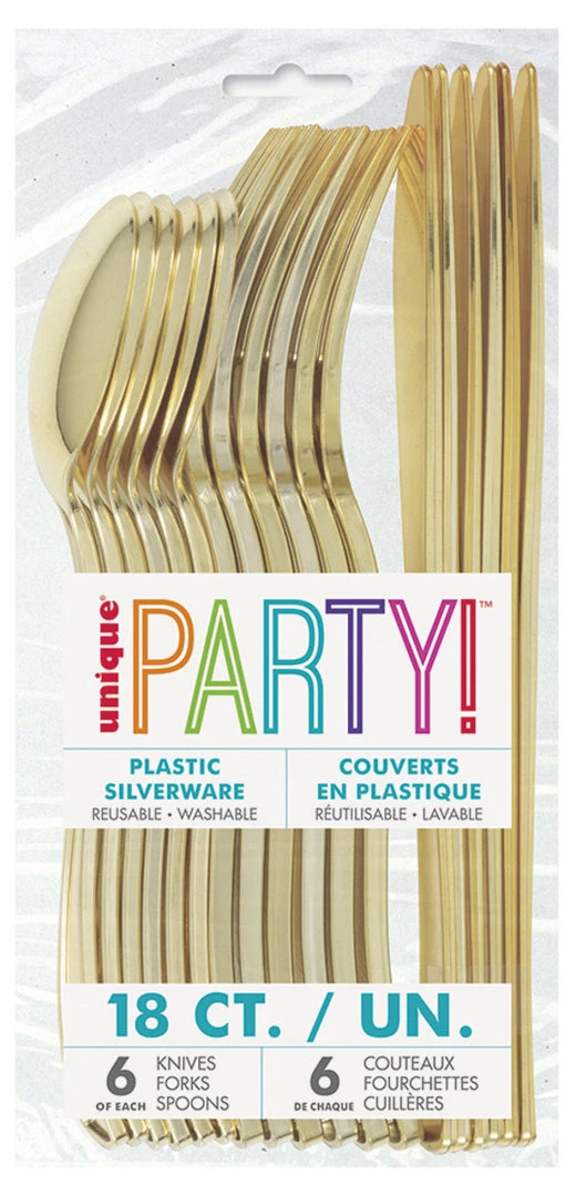 Meteor 18pk Metallic Gold Assorted Plastic Cutlery All Birthday