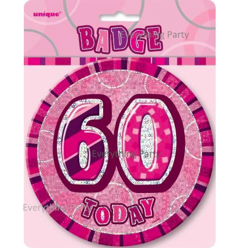 Meteorparty 60th Birthday Jumbo Badge – Pink All Birthday