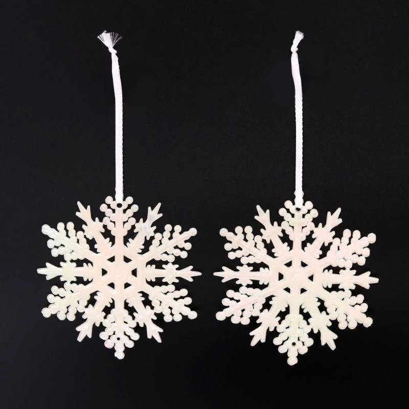 2pk White Iridescent Snowflake Tree Ornaments Christmas Decoration