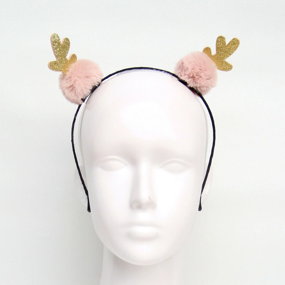 Pacific Wholesale By Event Christmas Headband – Gold Reindeer Antlers With Pink Fluffy Balls