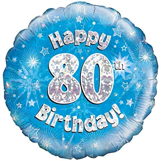 Qualatex Balloons 18″ Oaktree Happy 80th Birthday Holographic Blue & Silver Foil Balloon
