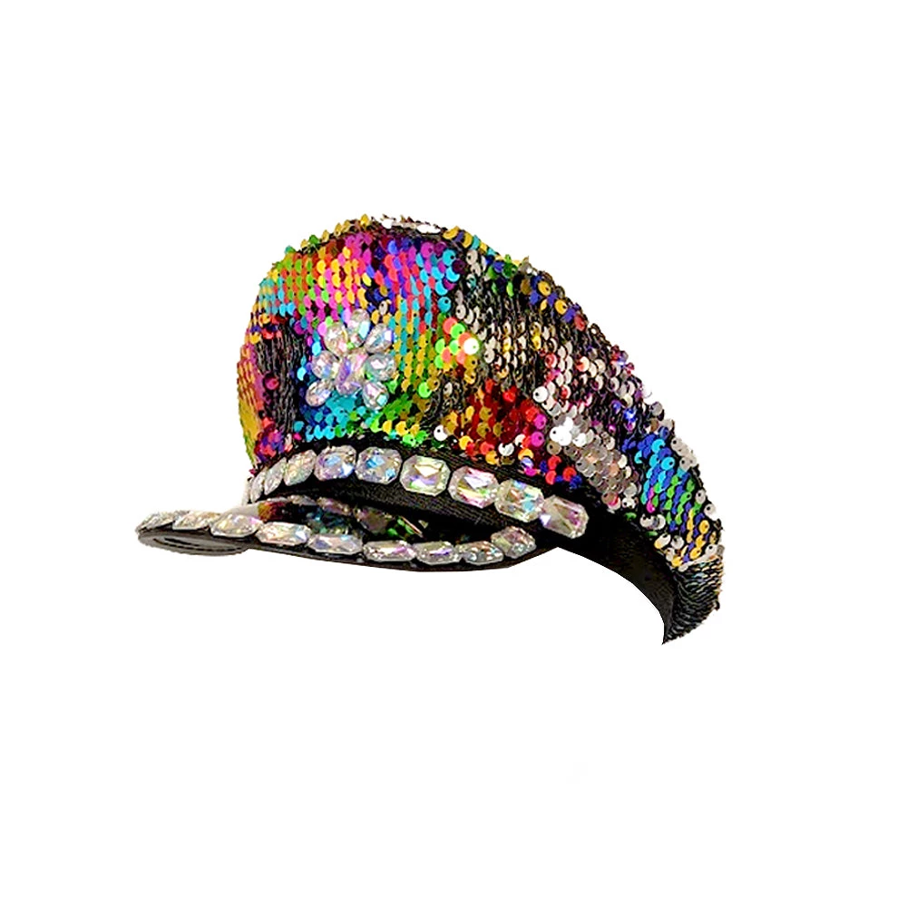 Deluxe Rainbow Sequin Festival Cap with Diamonds