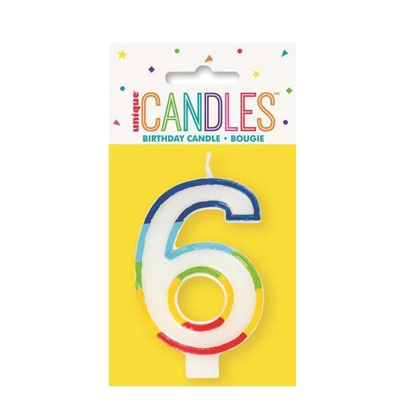 Unique All Birthday Numeral Candle With Rainbow Border – Number 6