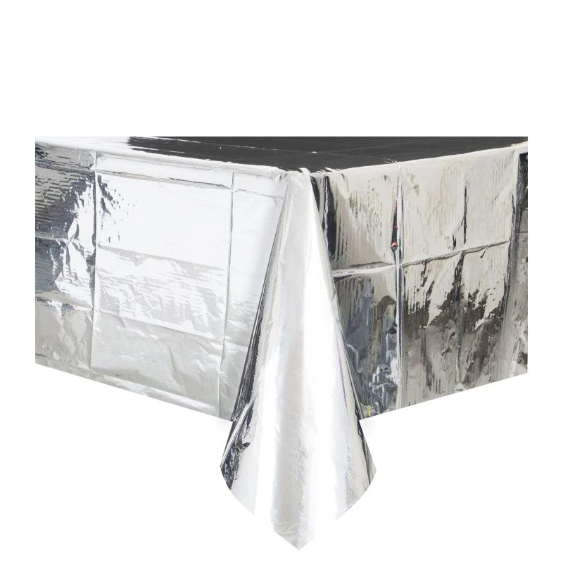 Unique Metallic Silver Plastic Rectangle Tablecloth All Birthday