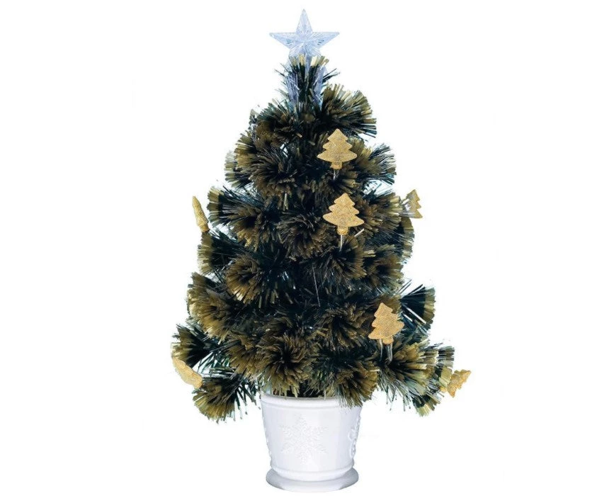 60cm Potted Green Christmas Tree with Ultra Bright Warm White Fibre Optic LED Lights