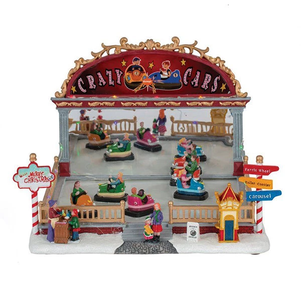 Animated Christmas Village Musical Bumper Cars Scene with LED Lights
